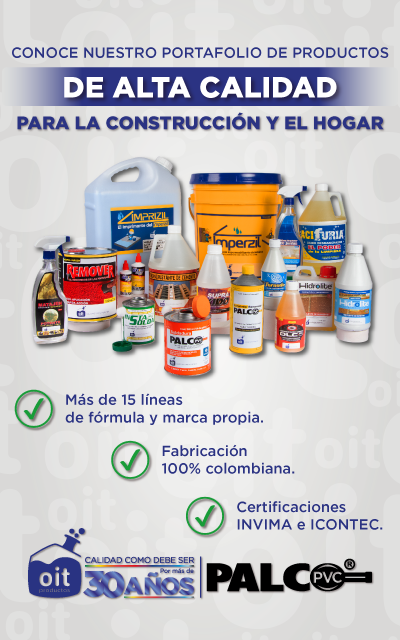 En OIT PRODUCTOS fabricamos y distribuimos soluciones químicas de alta calidad para la construcción, el hogar y la industria. Con más de 30 años de experiencia, nos destacamos por nuestro compromiso con el Cumplimiento, la Calidad y el Servicio. Ofrecemos productos confiables, con respaldo técnico, innovación constante y sello de calidad. Con marca propia, fabricación 100% colombiana, certificaciones INVIMA e ICONTEC, y presencia en mercados internacionales. ¡Somos su aliado de confianza!